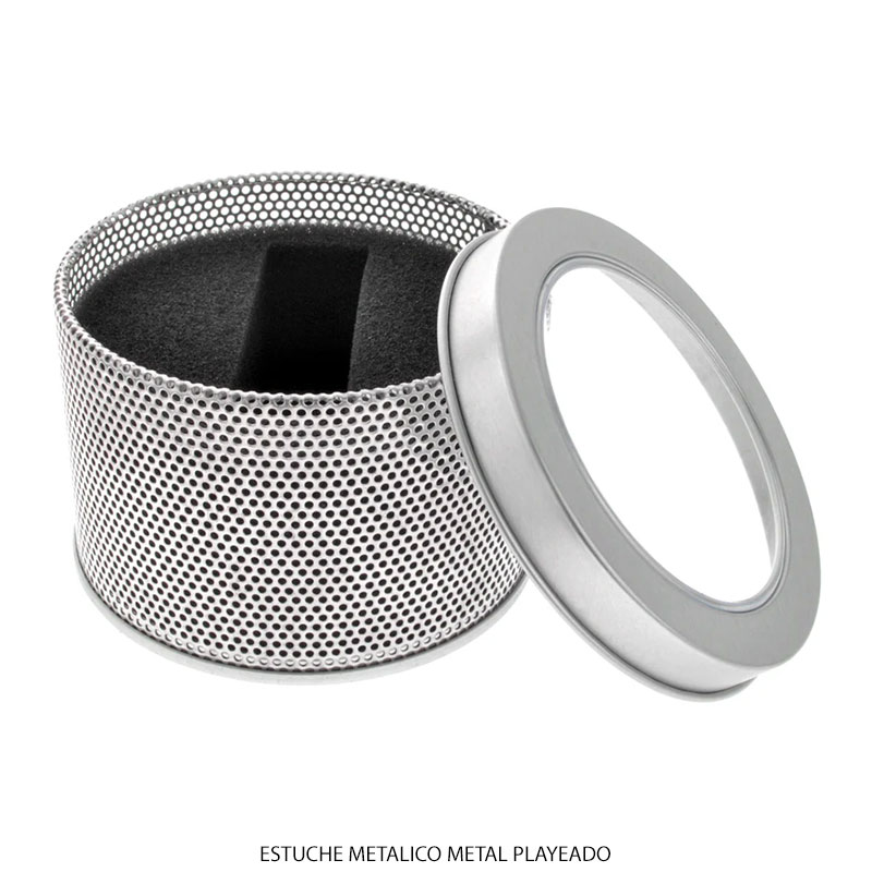 – Estuche Metálico Plateado Micro perforado para Reloj/Pulsera